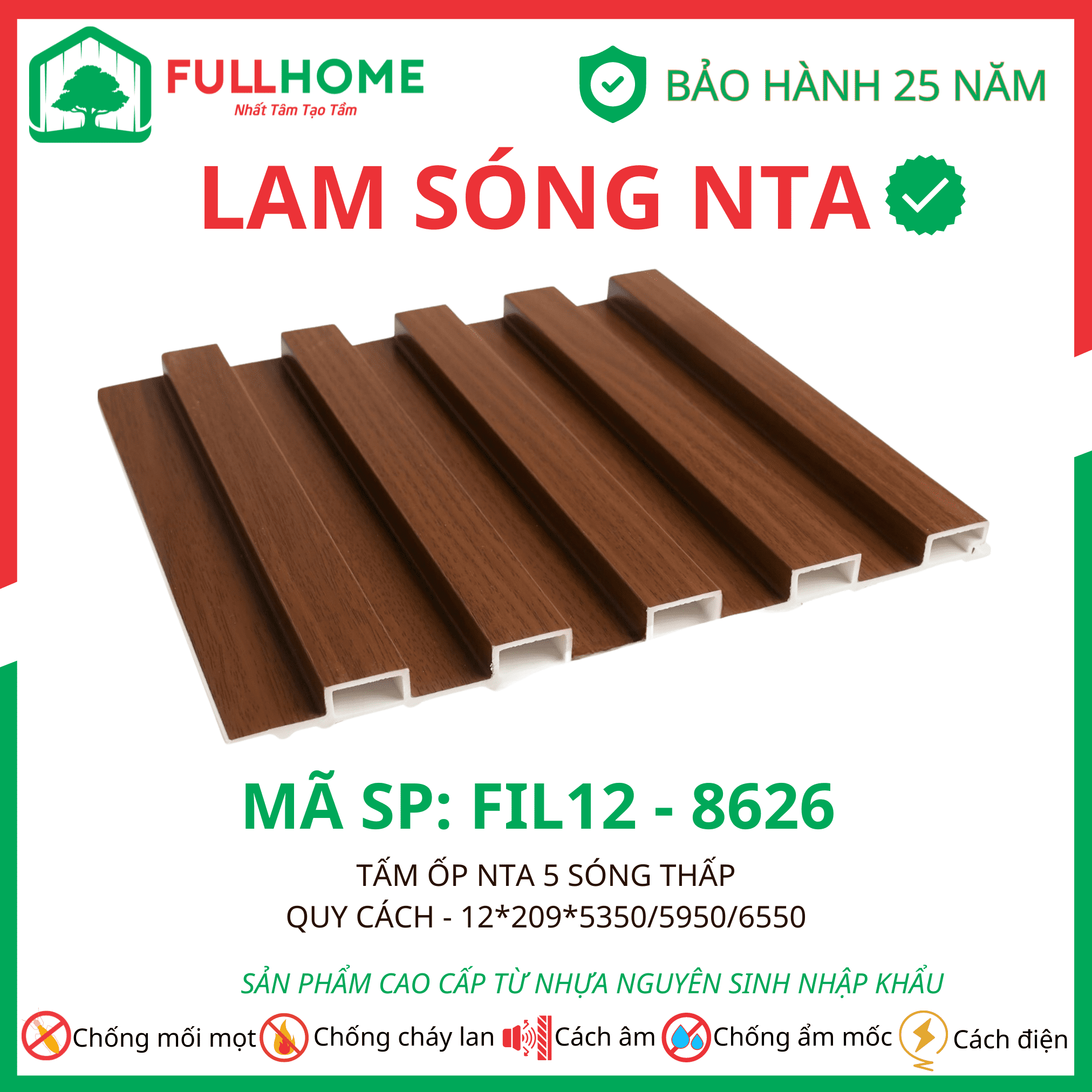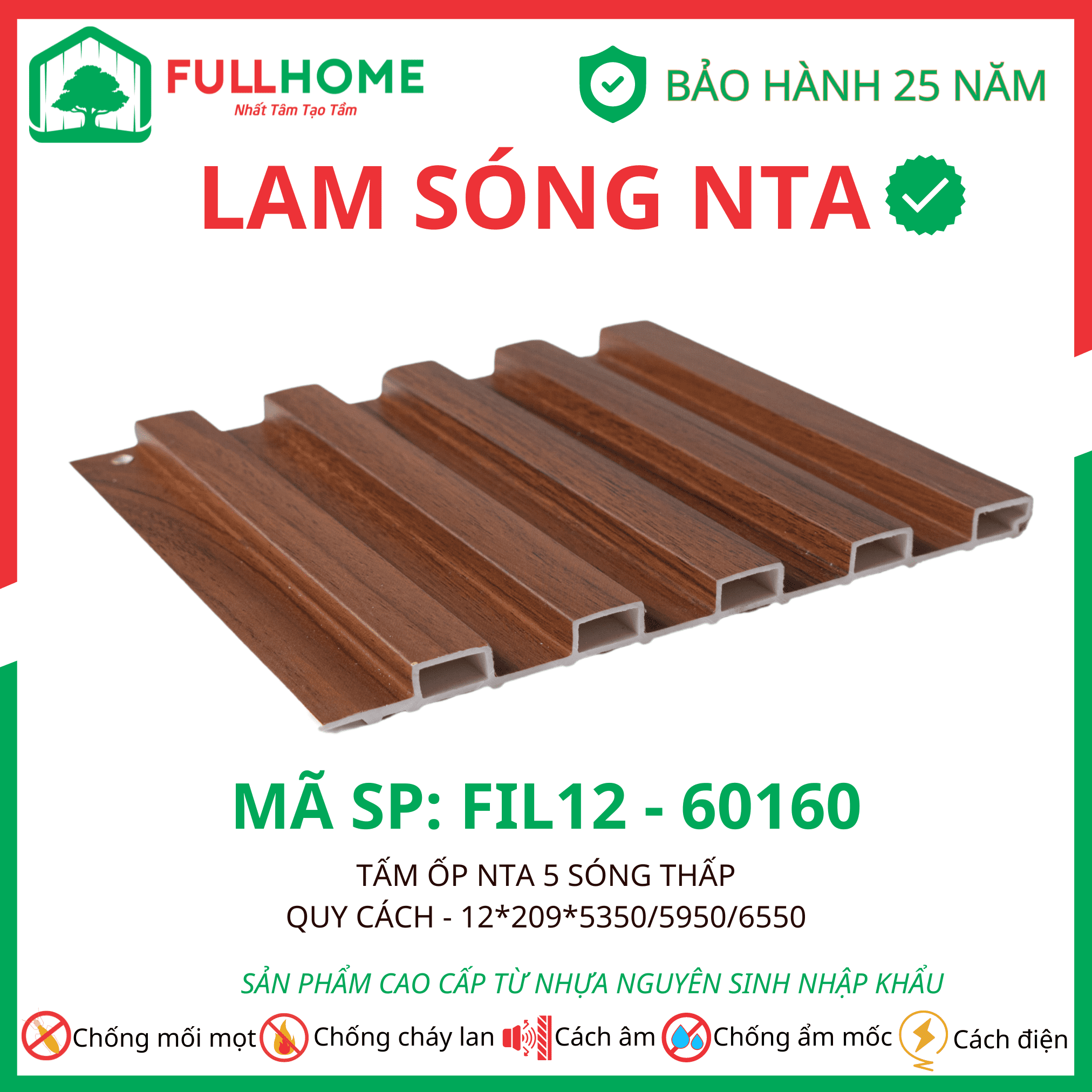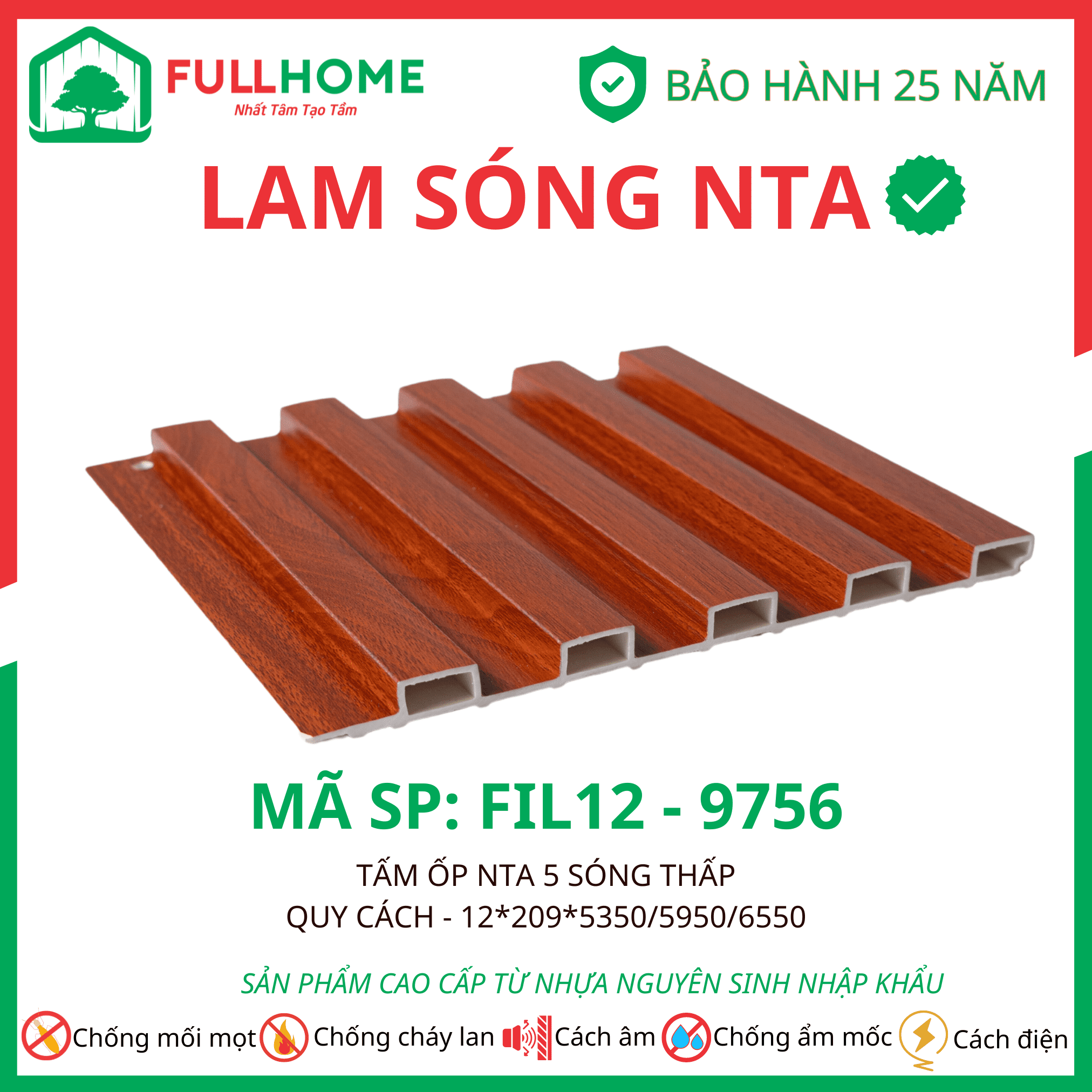 Tấm ốp NTA có cấu tạo 5 lớp công nghệ cao giúp chống nước, chống mối mọt.