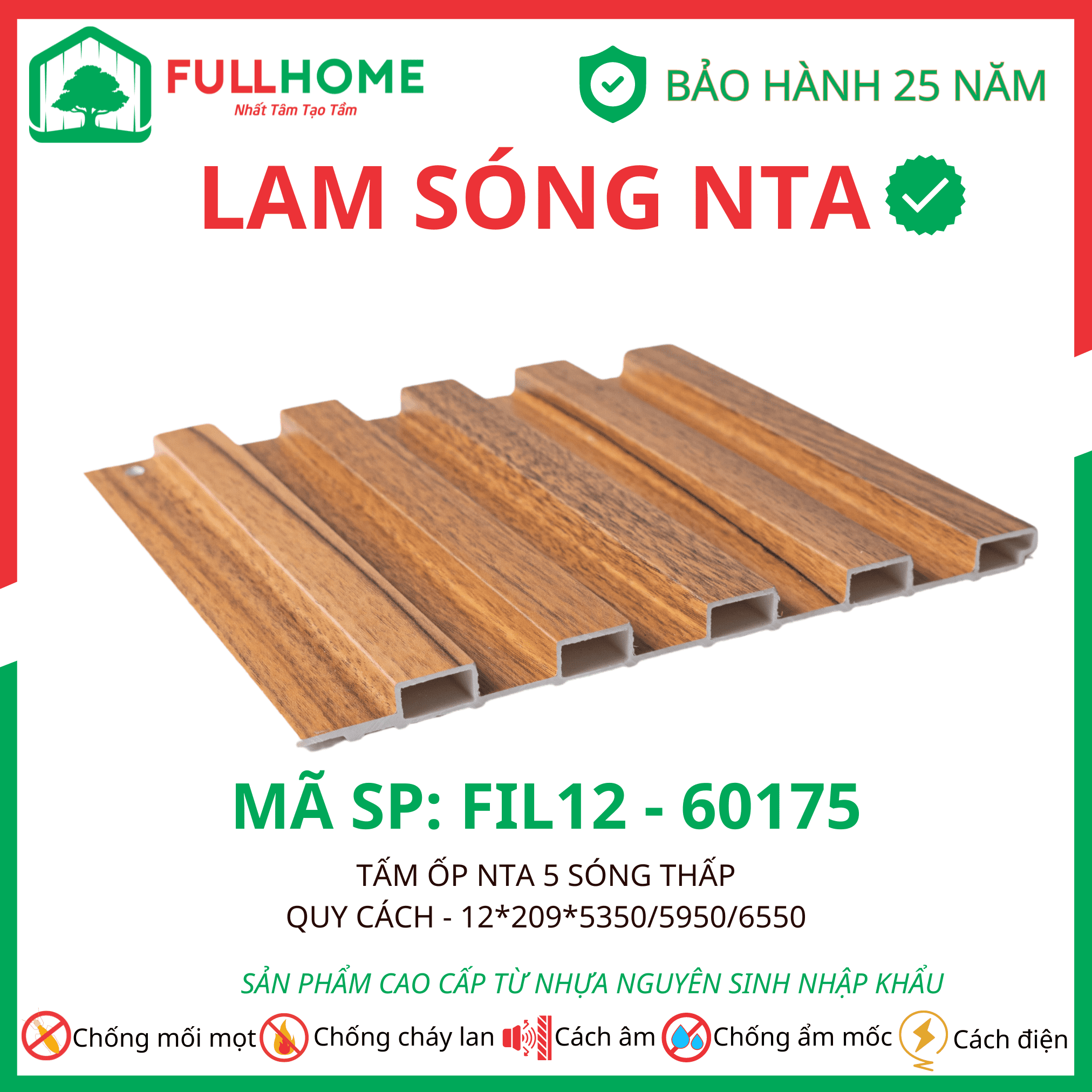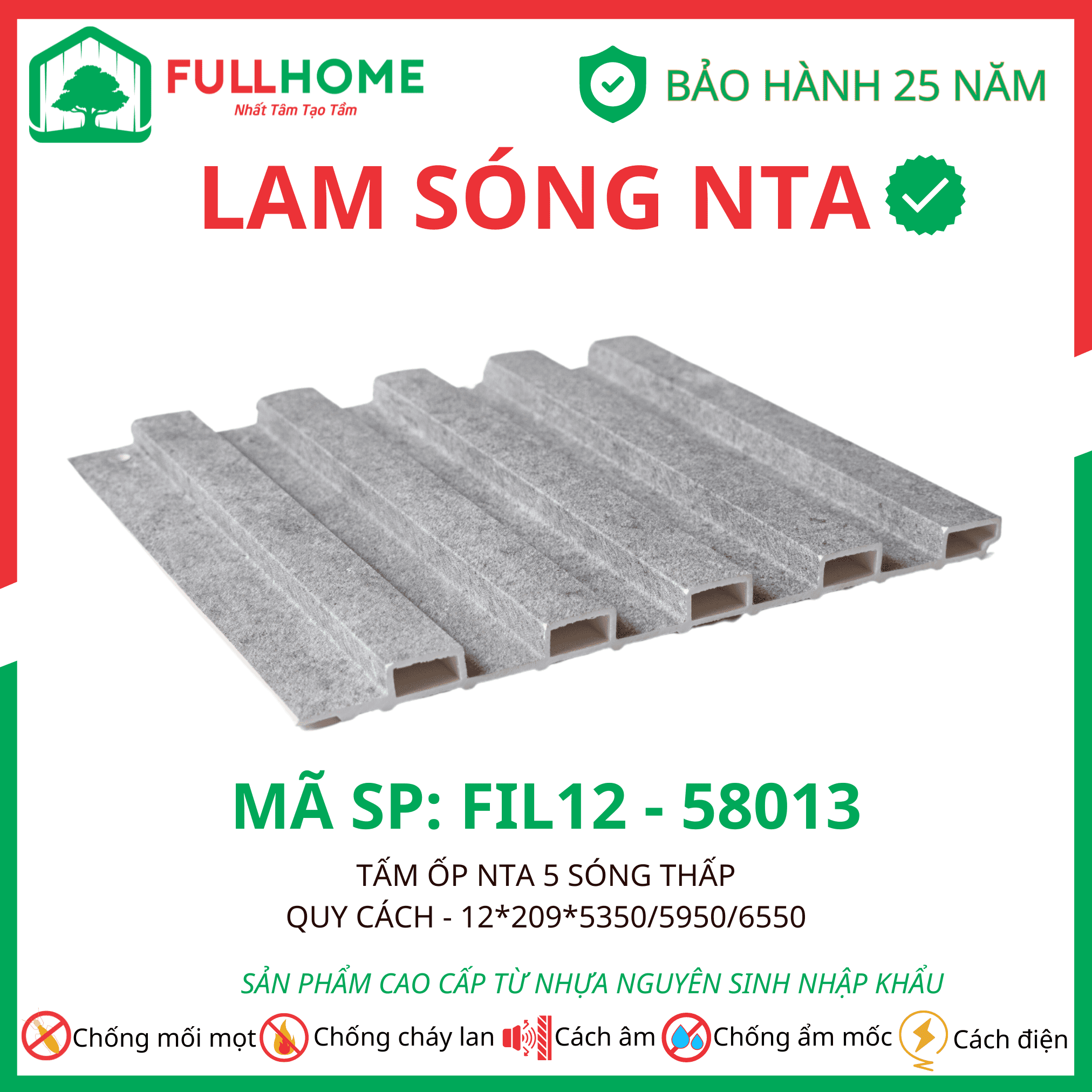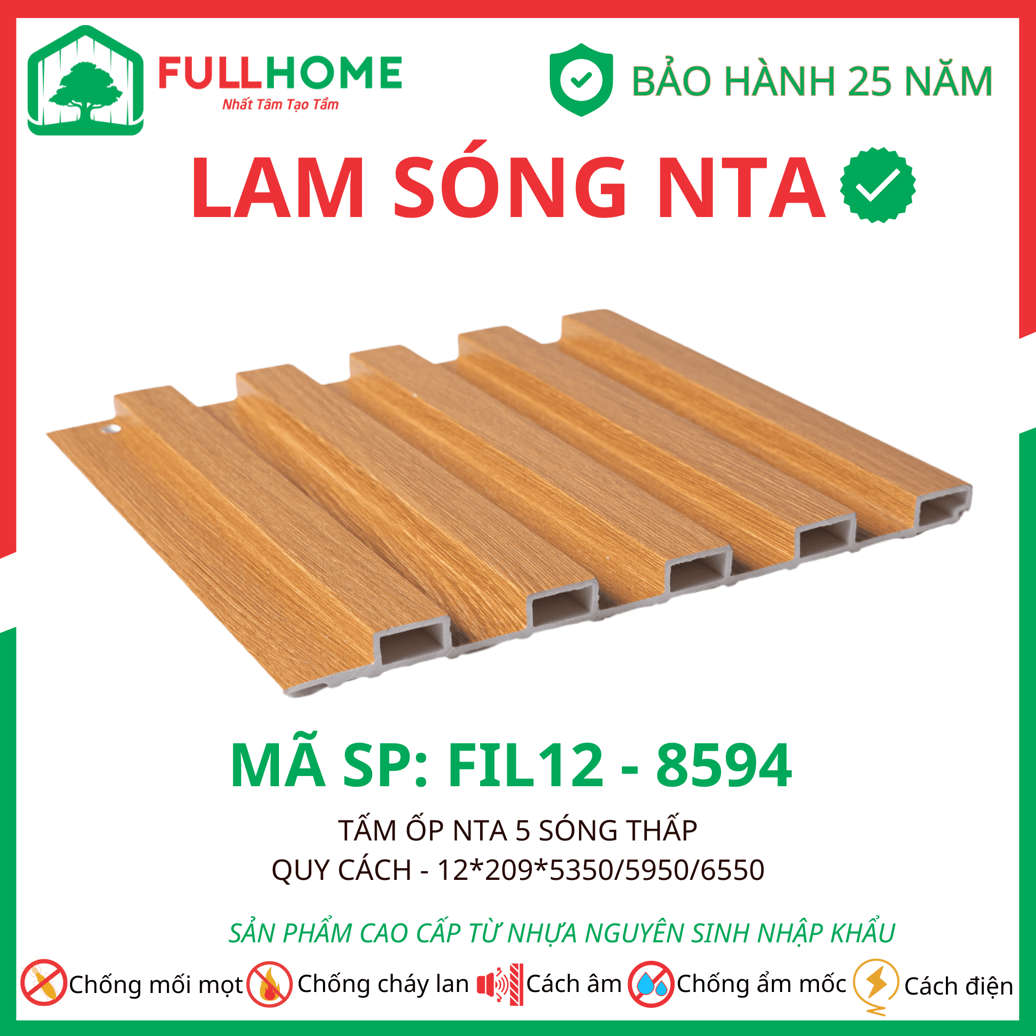 Tấm ốp NTA có cấu tạo 5 lớp công nghệ cao giúp chống nước, chống mối mọt.