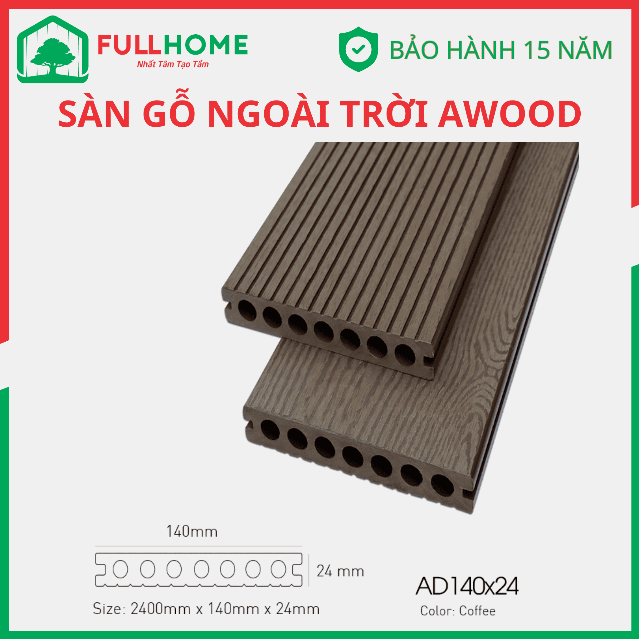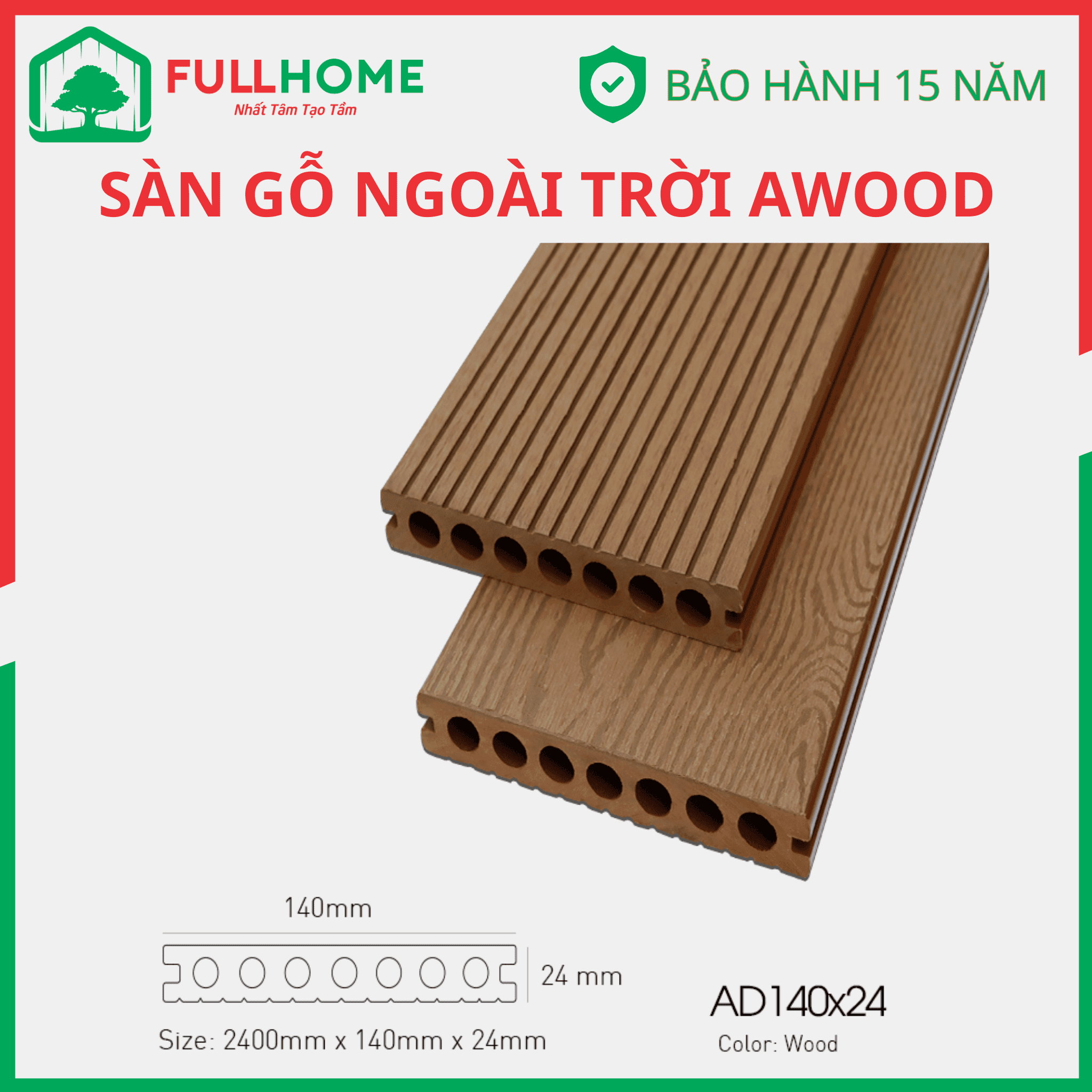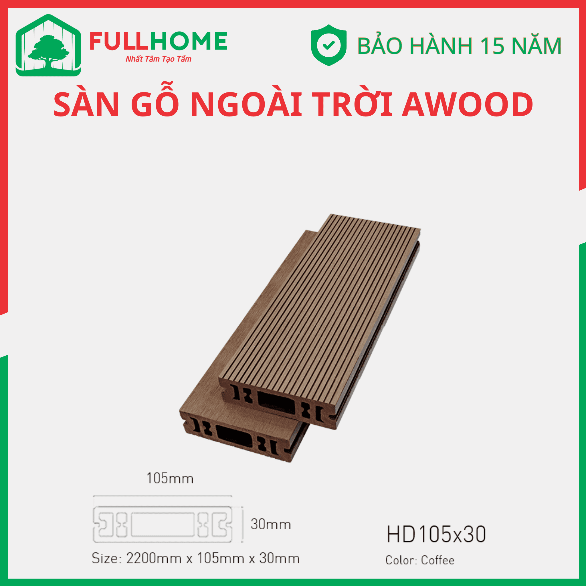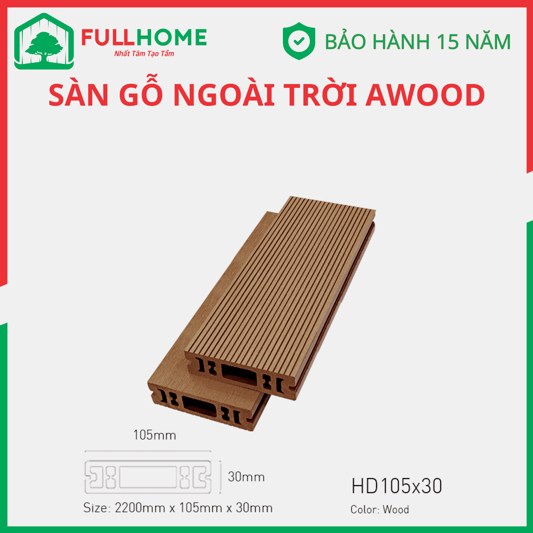 AWood là thương hiệu sàn gỗ ngoài trời được ưa chuộng được cấu tạo từ gỗ và nhựa sản xuất trên dây chuyền công nghệ tiến tiến và tiêu chuẩn Nhật.