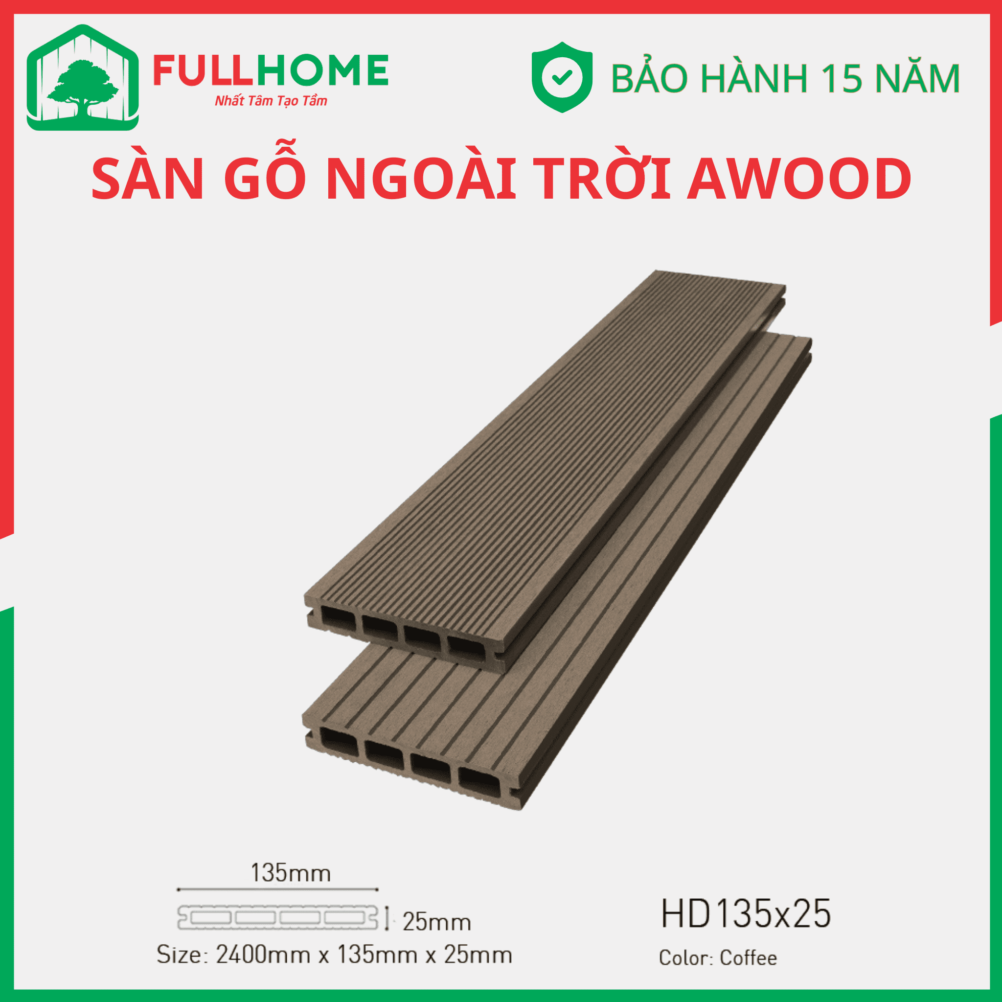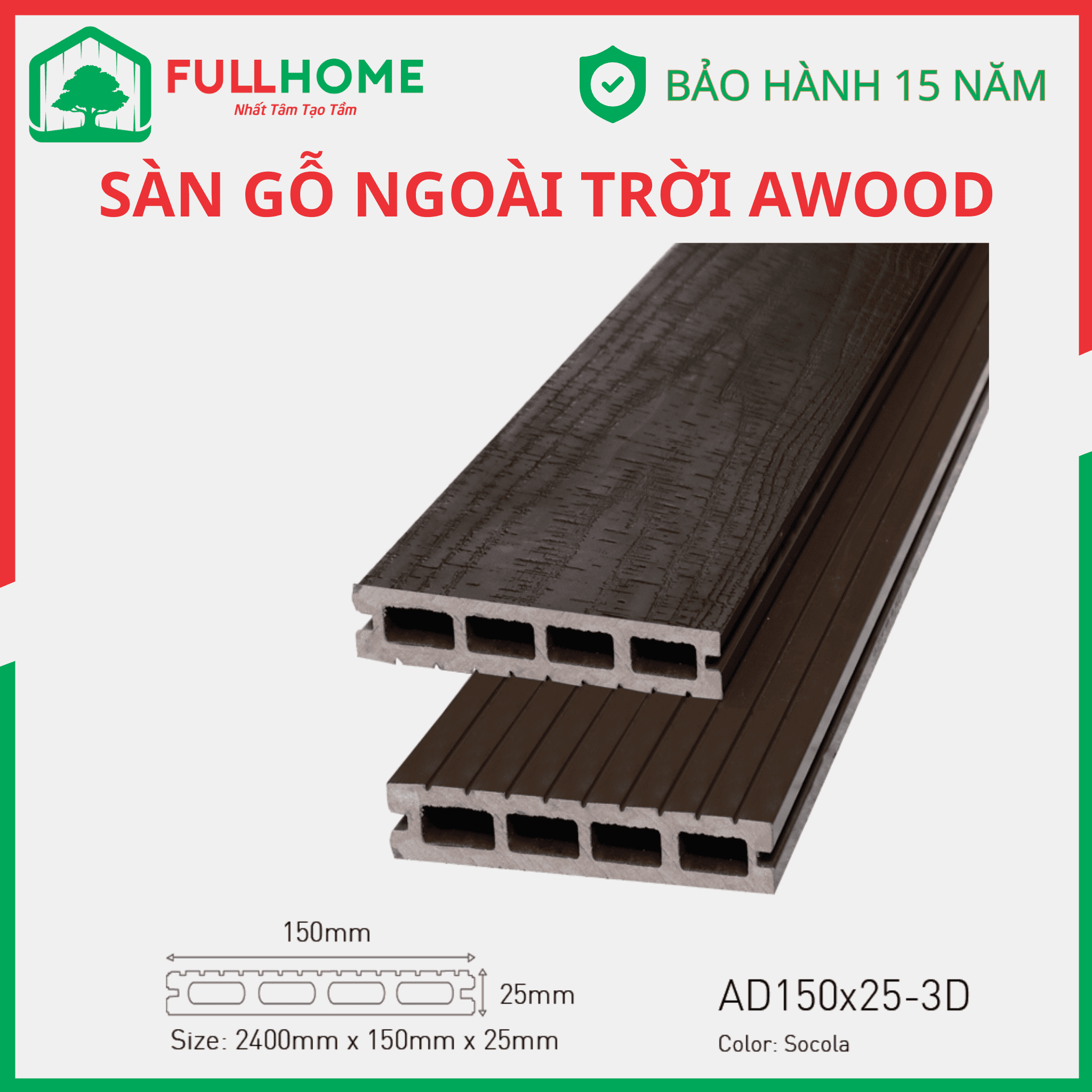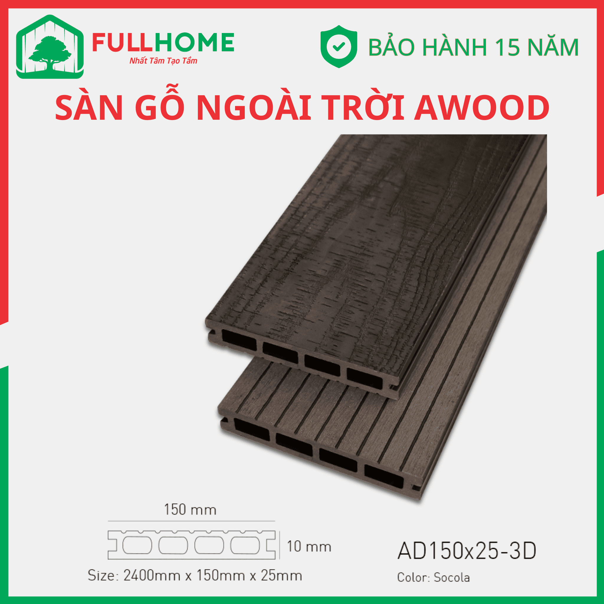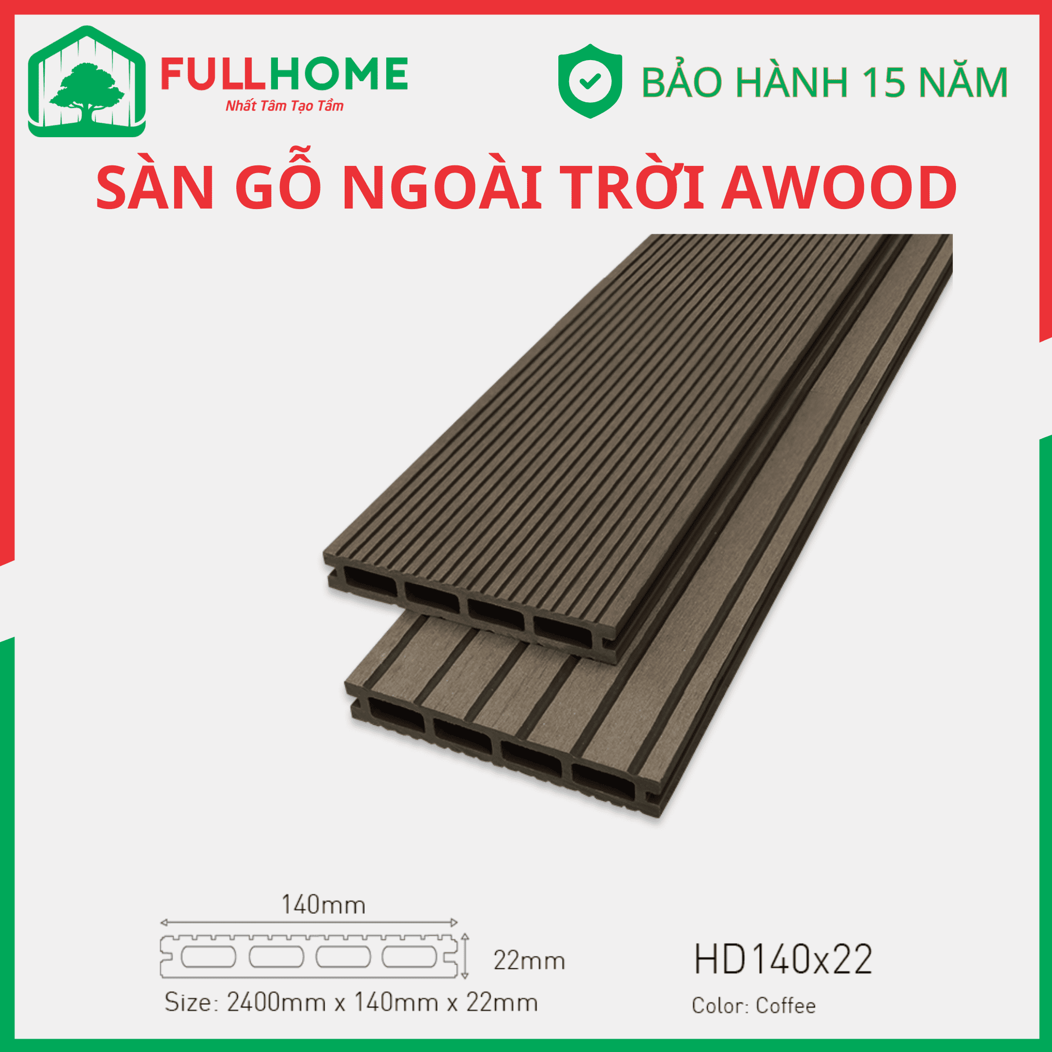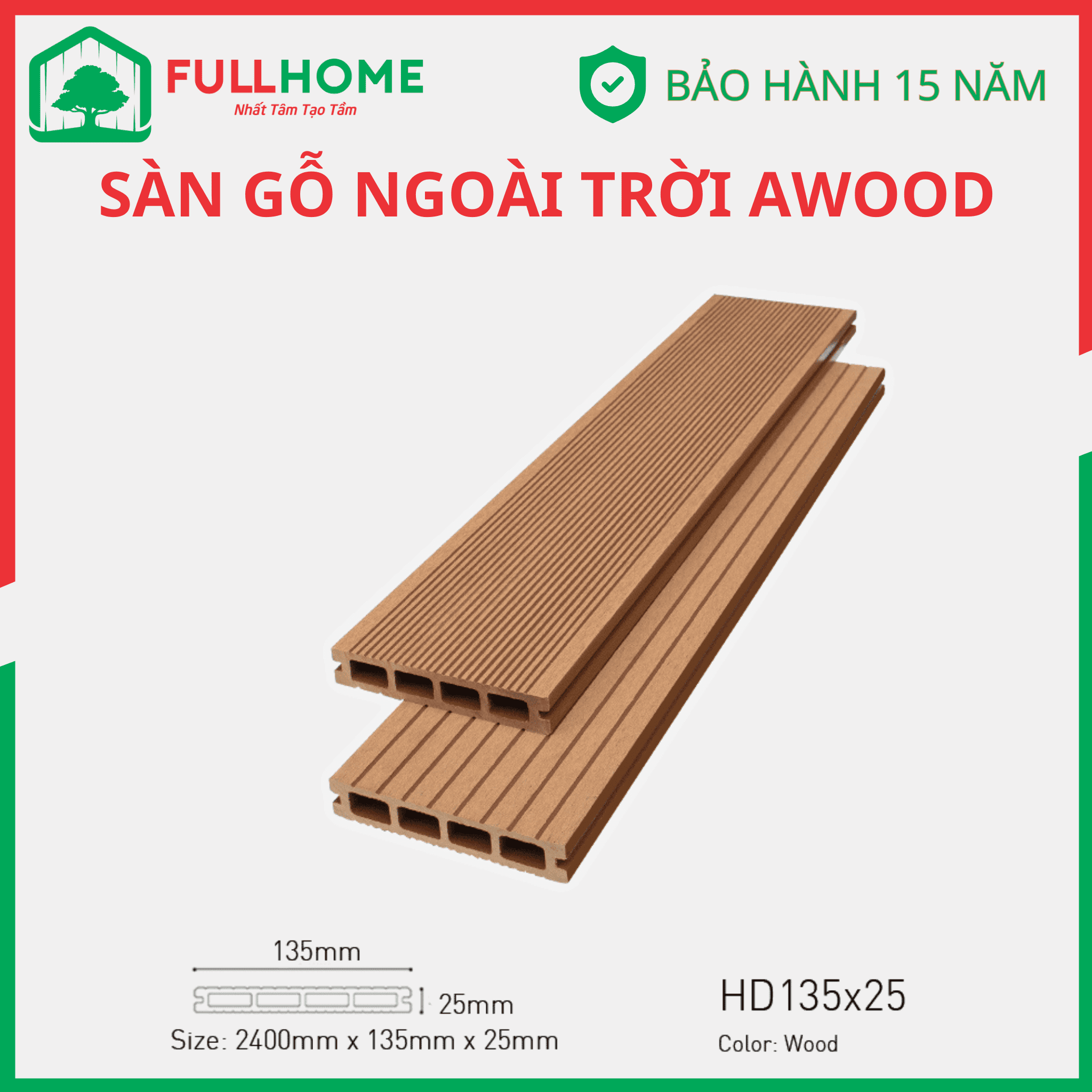 AWood là thương hiệu sàn gỗ ngoài trời được ưa chuộng được cấu tạo từ gỗ và nhựa sản xuất trên dây chuyền công nghệ tiến tiến và tiêu chuẩn Nhật.